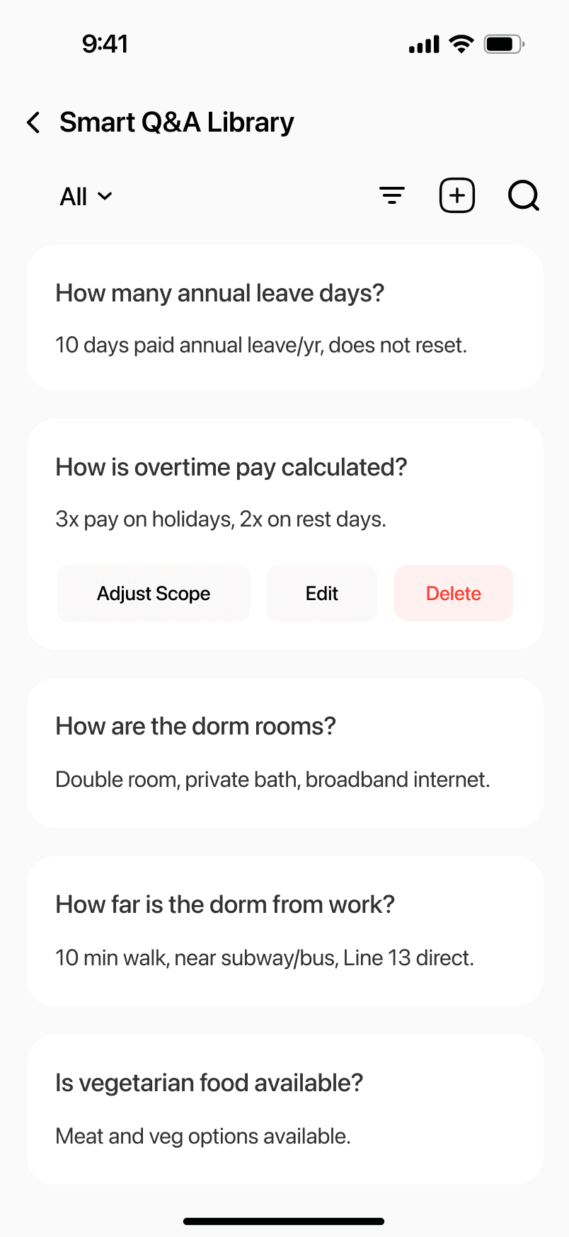 Employers had to open individual chat windows one by one to handle a constant flow of similar questions arriving at unpredictable times, leading to inefficiency.