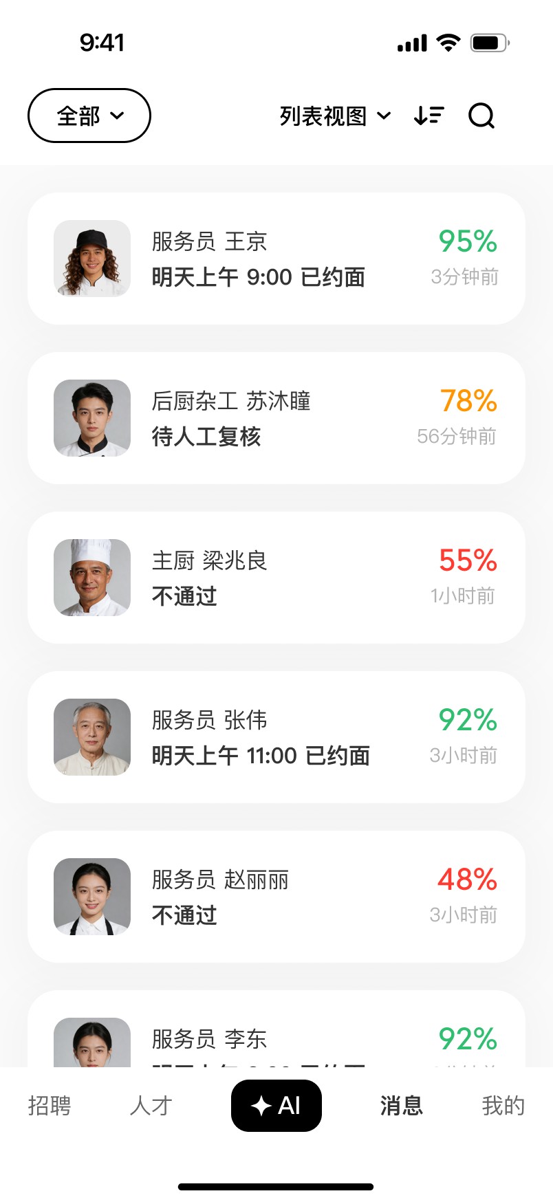 Visual priority: Address the widely observed “face-first” preference in user research by presenting large images to clearly convey the candidate’s real appearance.