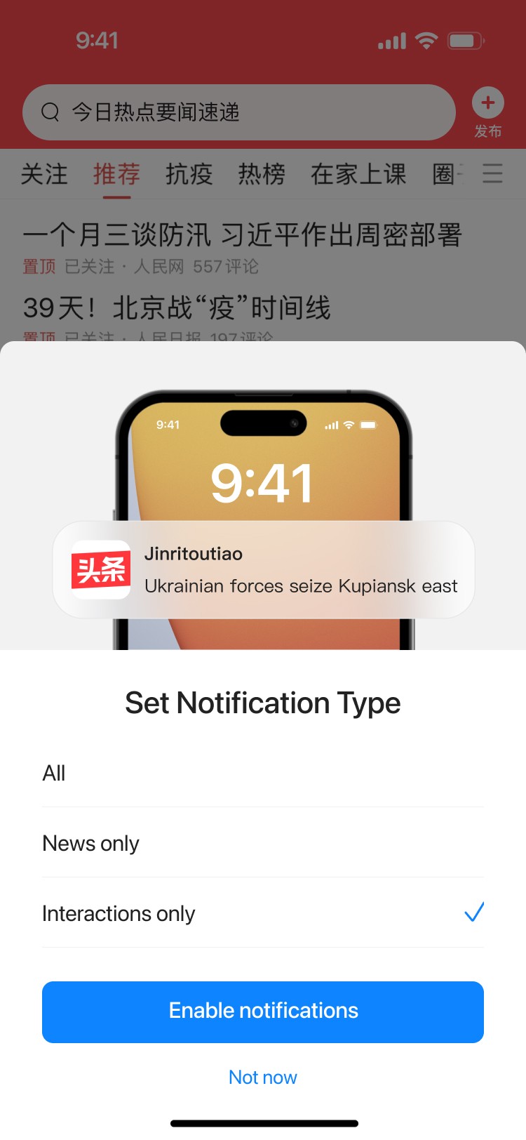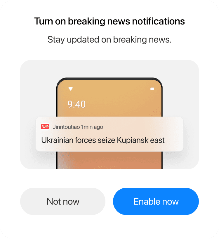In new-user scenarios, the system forcibly display the push permission prompt, asking whether the user wants to enable notifications.